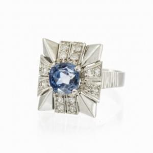 253. Bague carrée sertie d'un saphir (env 2 ct) et de diamants