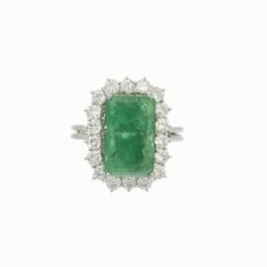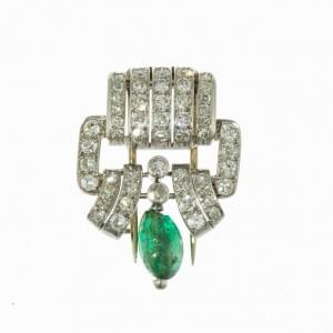 275. Broche sertie de diamants et de deux émeraudes en cabochon (env...