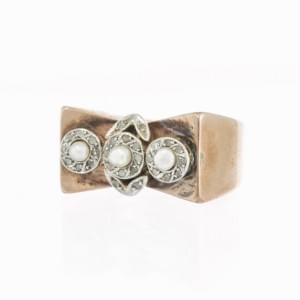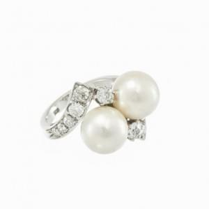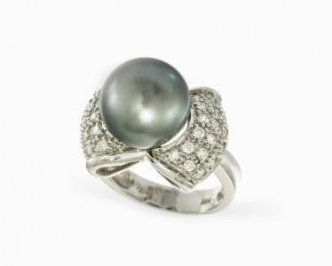 255. Bague nœud sertie d'une perle de Tahiti épaulée d'un pavage de d...