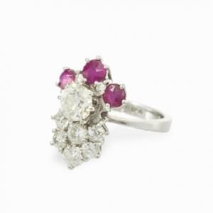 258. Bague sertie d'un diamant (env. 0.80 ct) entouré de rubis et de...