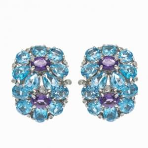 264. Paire de clips d'oreilles double fleurs sertis d'améthystes, de...