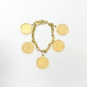 265. Bracelet retenant cinq pièces de monnaie montées en pendentif