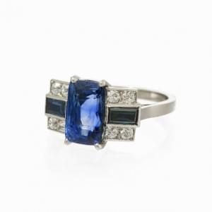 267. Bague sertie d'un saphir épaulé de diamants et de saphirs taille...