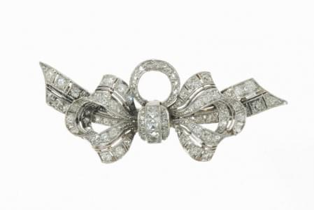 272. Broche Art déco sertie de diamants (env. 1.2 ct) et retenant une...