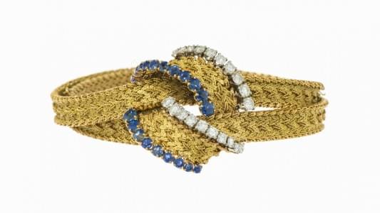 282. Régner Paris, bracelet nœud serti de saphirs et diamants (env 1,...
