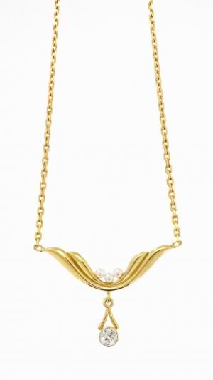 284. Collier retenant un pendentif serti d'un diamant et de perles