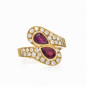 285. Bague toi et moi sertie de rubis taille poire entourés de diaman...