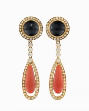 286. Paire de pendants d'oreilles sertis d'un onyx entouré de diamant...