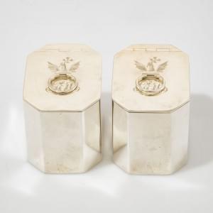 391. Paire de boîtes à thé d'époque George III gravées d'initiales et...