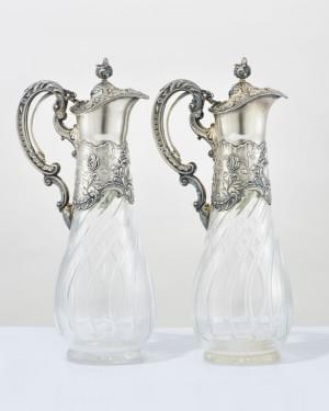 395. Paire de carafes de style rocaille à cannelures torses, motif de...