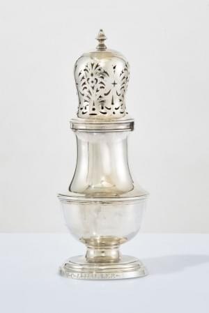 418. Saupoudroir balustre ajouré de palmettes, gravé M.C.L. Haller,
