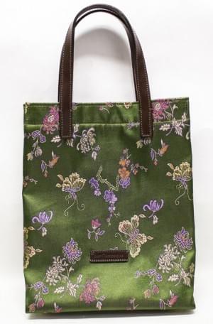 Tissu brodé vert à décor oriental de fleurs et papillons, double...