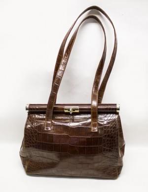 3010. Grand sac en cuir marron façon croco
