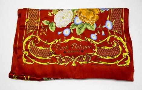 Foulard à décor de montre, soie, 130x130 cm. On joint un foulard...