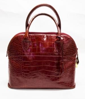 Cuir rouge, impression croco, fermeture Eclair, double anse, 26x...