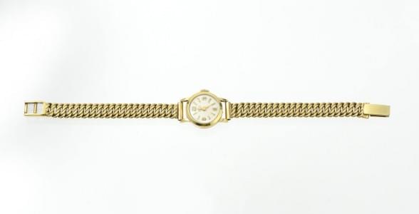 Cadran blanc, chiffres arabes, index bâton et aiguilles dorés, o...
