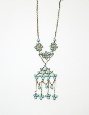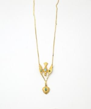 3083. Collier retenant une colombe et un cœur sertis de turquoises