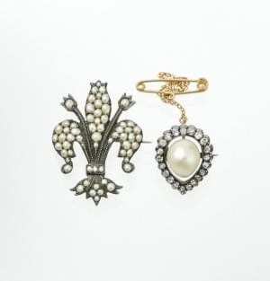 3056. Broche sertie d'une perle entourée de diamants en rose