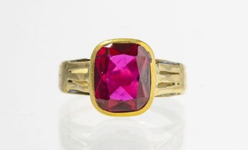 3057. Bague chevalière sertie d'un rubis synthétique
