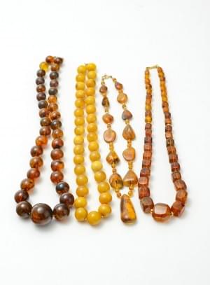 3065. Lot de quatre colliers de perles d'ambre