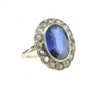 3069. Bague sertie d'un saphir synthétique entouré de diamants
