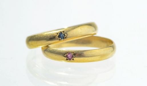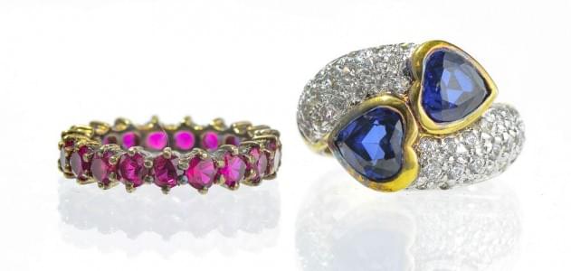 3074. Lot de deux anneaux sertis l'un d'un rubis, l'autre d'un saphir