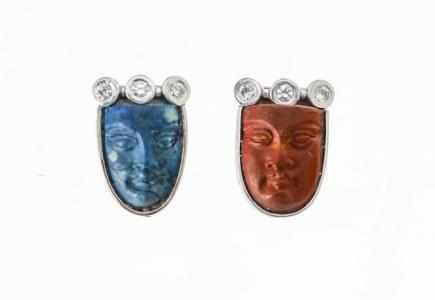 3082. Paire de boucles d'oreilles serties de jaspe à motif de visage s...