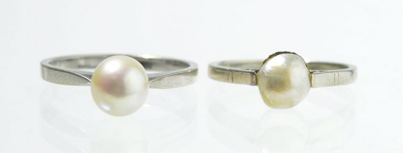 3091. Lot de deux bagues serties chacune d'une perle
