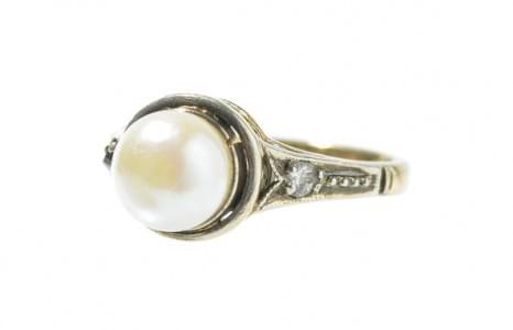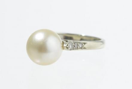 3092. Bague sertie d'une perle épaulée de diamants