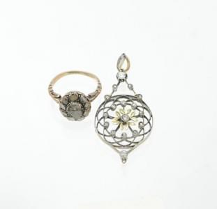 3098. Ensemble d'un pendentif et d'une bague sertis de diamants
