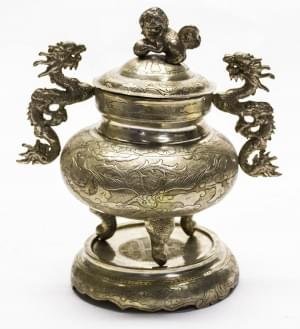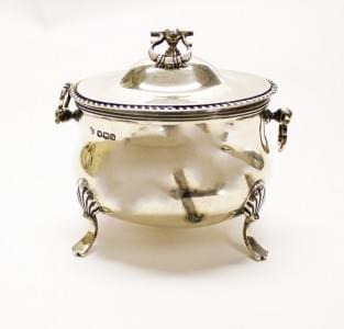 3321. Drageoir tripode néoclassique à décor de mascarons