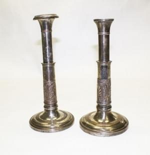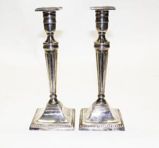 3307. Paires de chandeliers de style George III à fût cannelé et bordu...