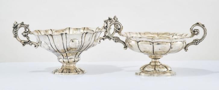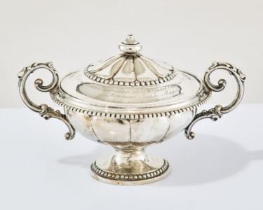 3341. Grande jatte à anses ornées de perlettes d'époque George III