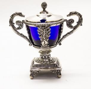 France, circa 1830, argent et verre bleu cobalt, H 14 cm, 130g