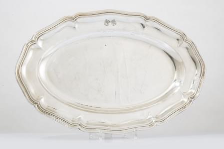3371. Grand plat ovale festonné gravé d'armoiries d'alliance
