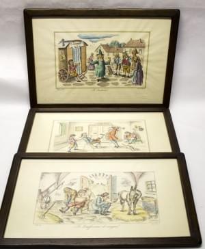 Suite de six estampes humoristiques sur le thème de la médecine,...