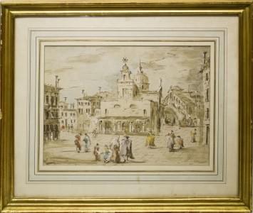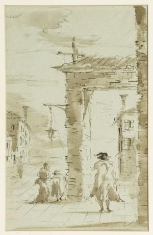 Personnages à Venise, encre et lavis sur papier, 28x18 cm