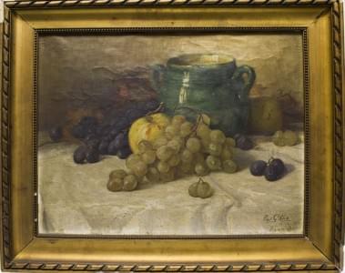 Nature morte aux raisins, huile sur toile, signée et datée 1916,...