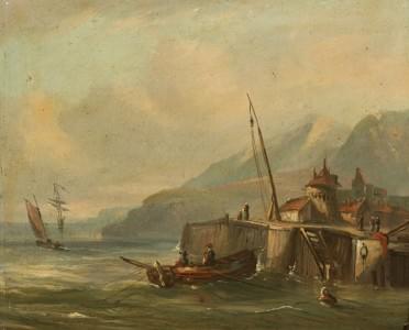 Village de pêcheurs près du rivage, huile sur toile, 38 x 46 cm