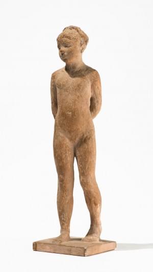 Jeune homme, plâtre patiné, terre cuite, daté 44, H 49 cm