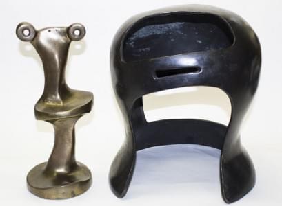 Personnage sous casque (dit aussi Sid), sculpture en deux partie...