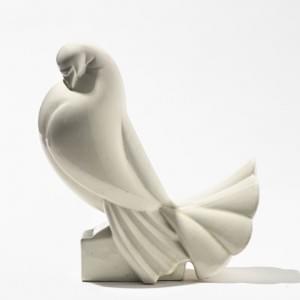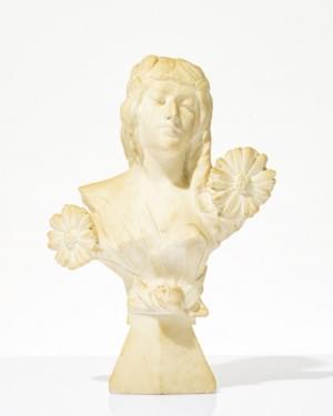 Femme aux fleurs, marbre blanc sculpté et gravé, H 40 cm