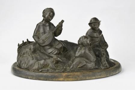 Enfants écoutant la mandoline, groupe en bronze patine médaille,...