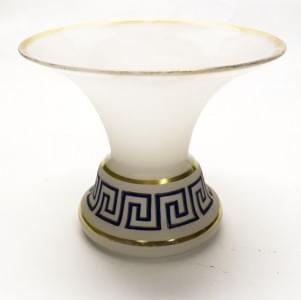 Opaline blanche à décor de frise grecque bleue et or, H 17 cm