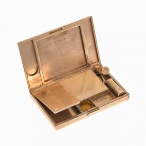 3651. Poudrier et étui à rouge à lèvre à décor de stries