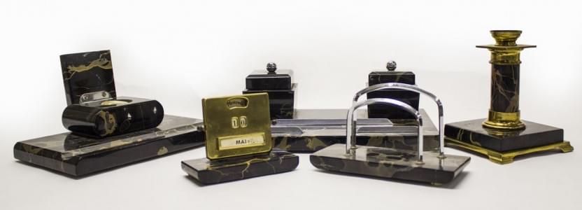 3662. Nécessaire de bureau comprenant un calendrier, un encrier, un po...