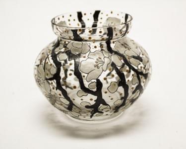 Petit vase à décor japonisant de fleurs de cerisier, verre émail...