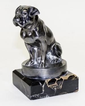 Régule patinée noire sur terrasse en marbre blanc, L 11,5 cm