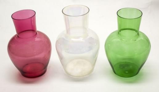 3699. Suite de trois vases balustres, rouge, vert et irisé