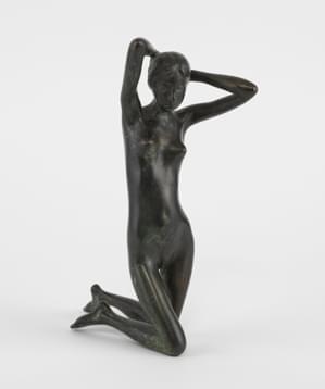 Jeune fille agenouillée, bronze à patine verte, non signé, H 24...
